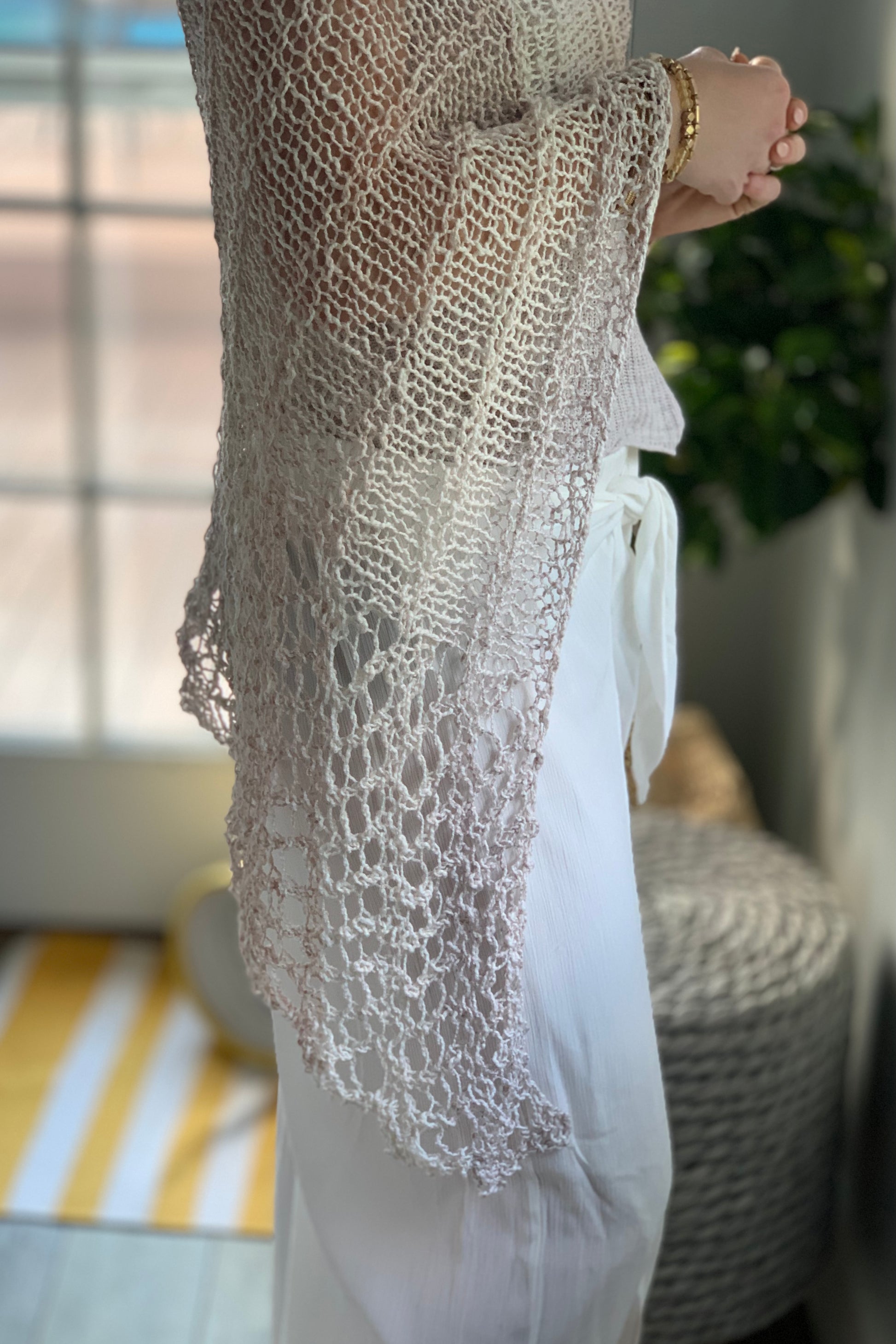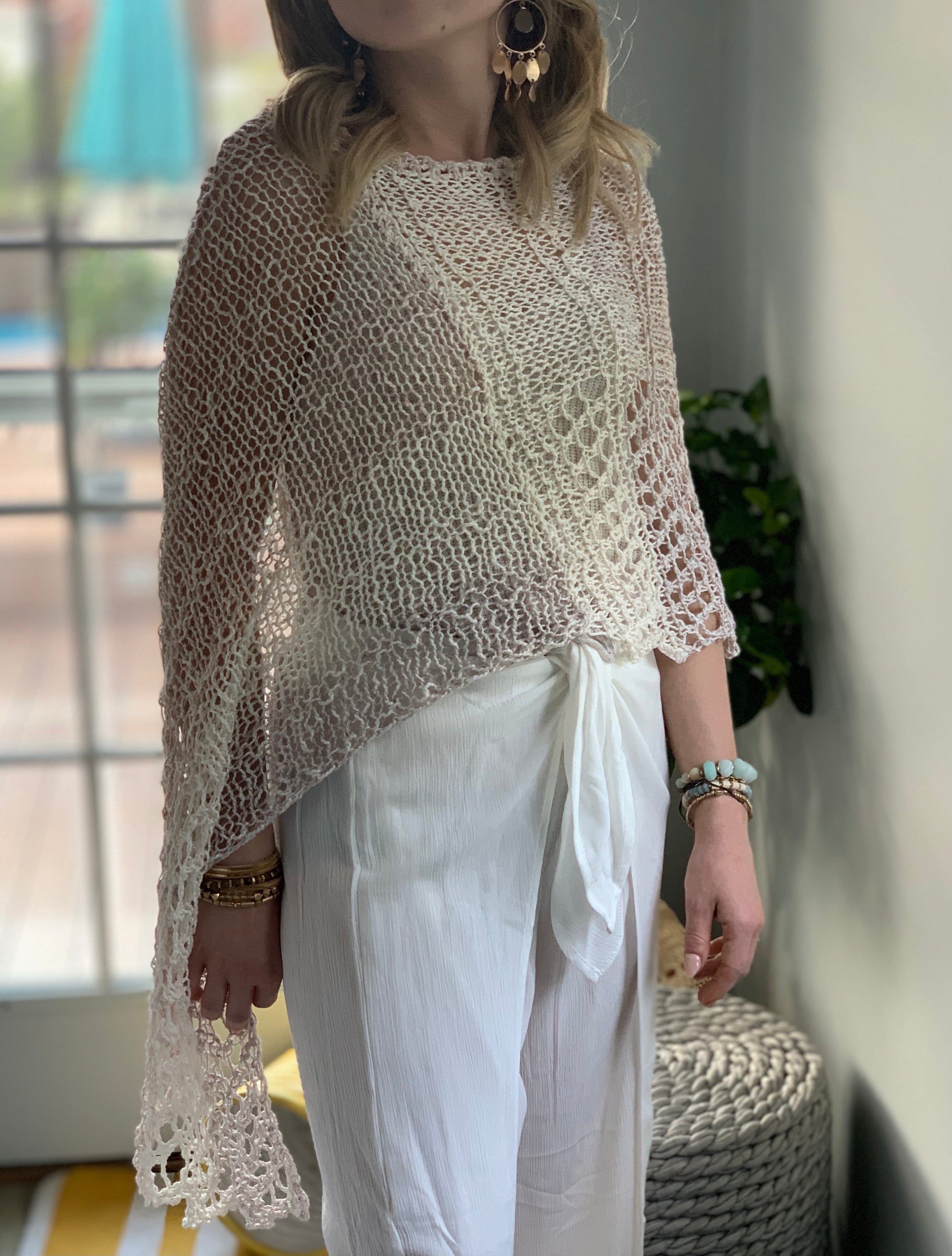 - hand knit in beautiful shades of ivory, white, and pale blush