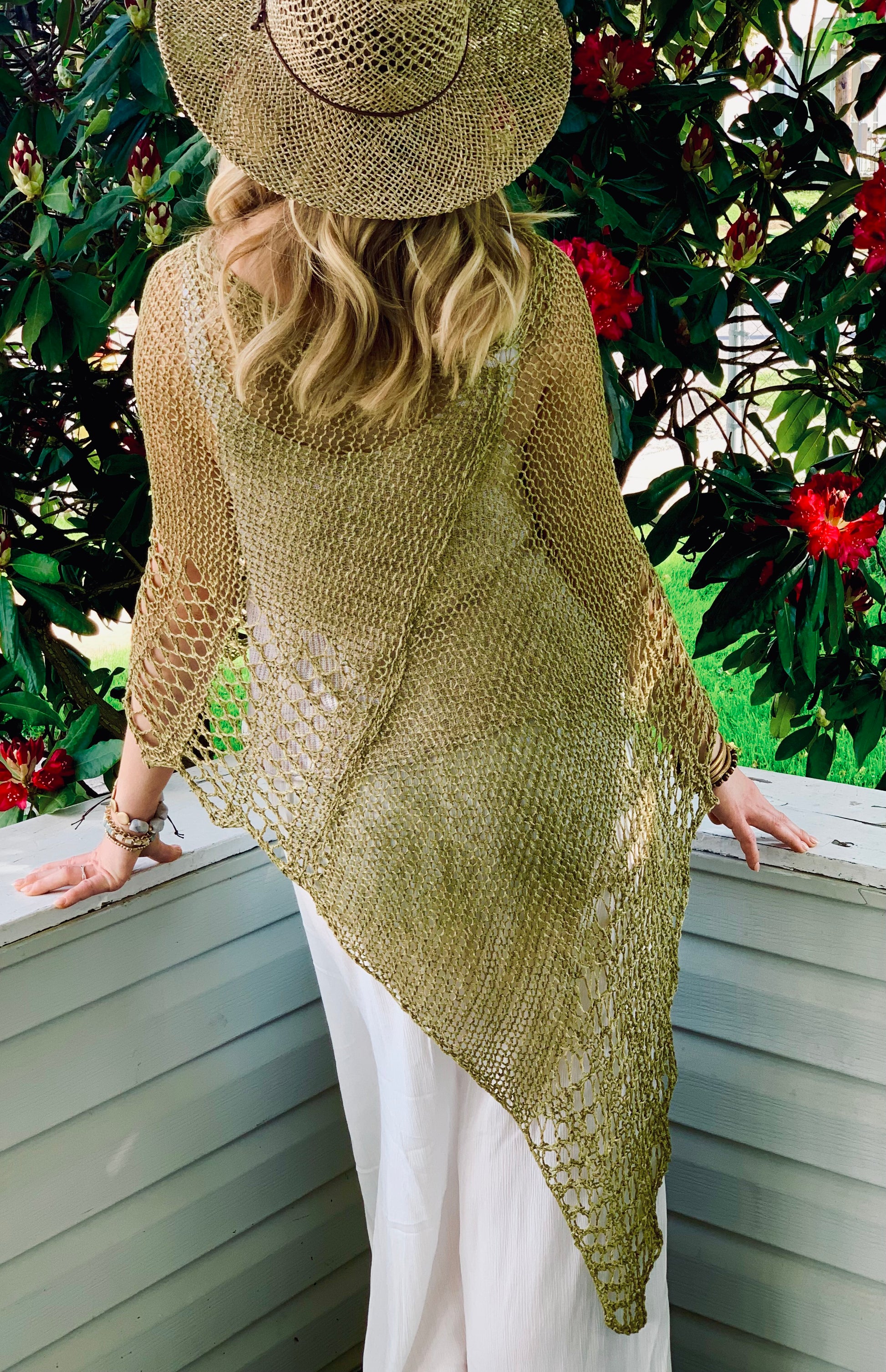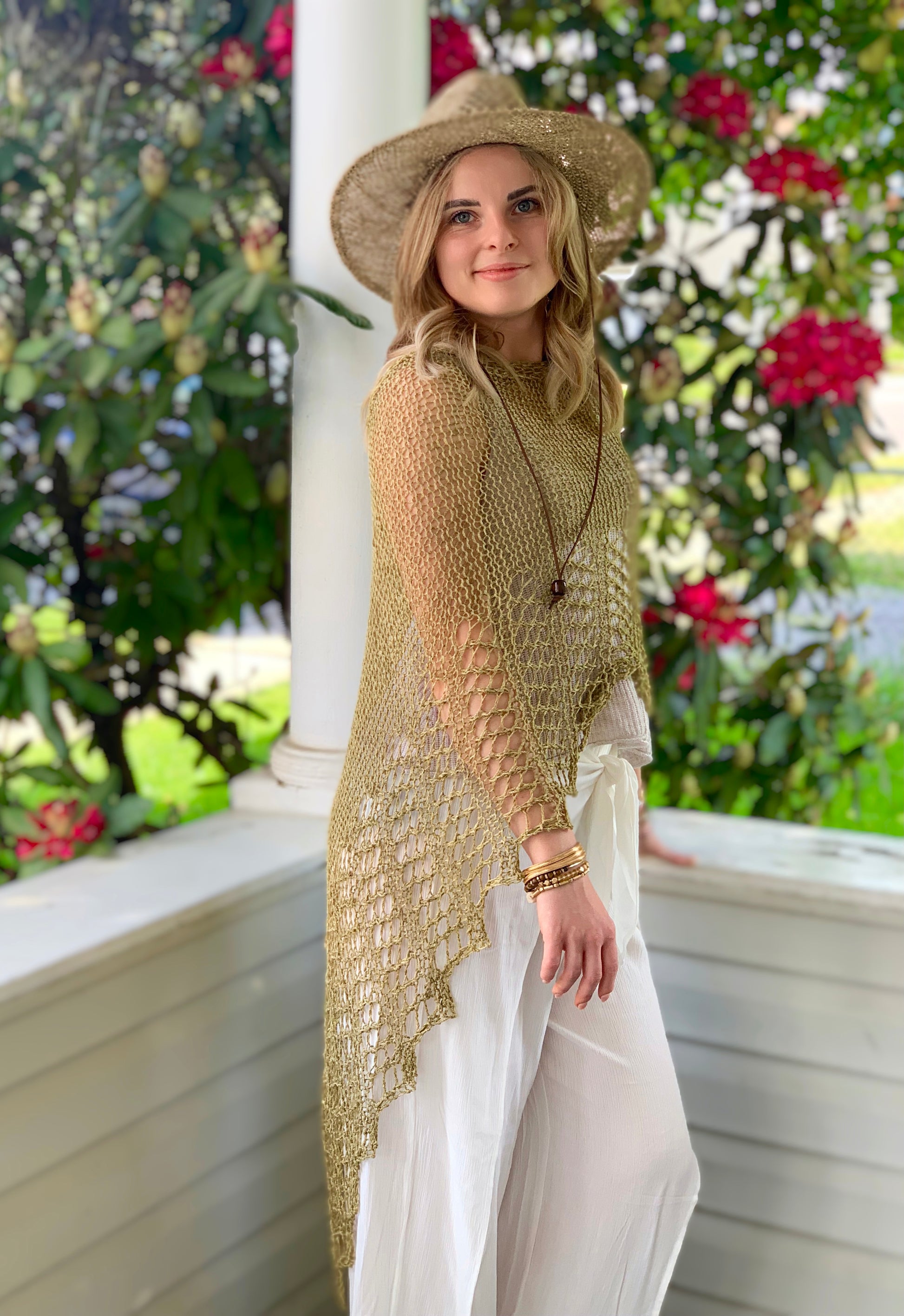 Hand Knit Linen Poncho, Shawl, Beach Cover-up