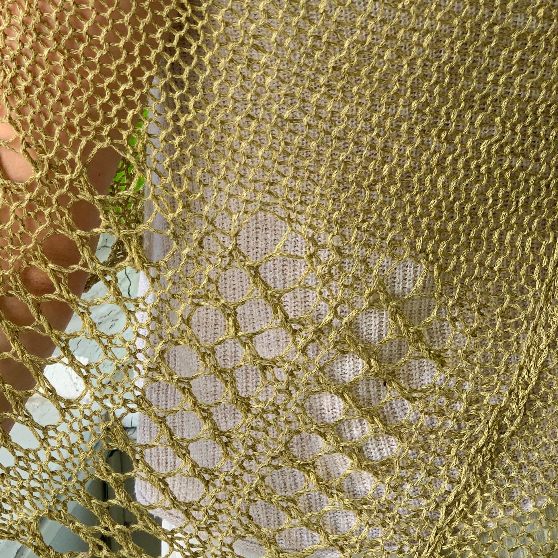 - open knit with lacy detailed hem, lightweight, not hot
