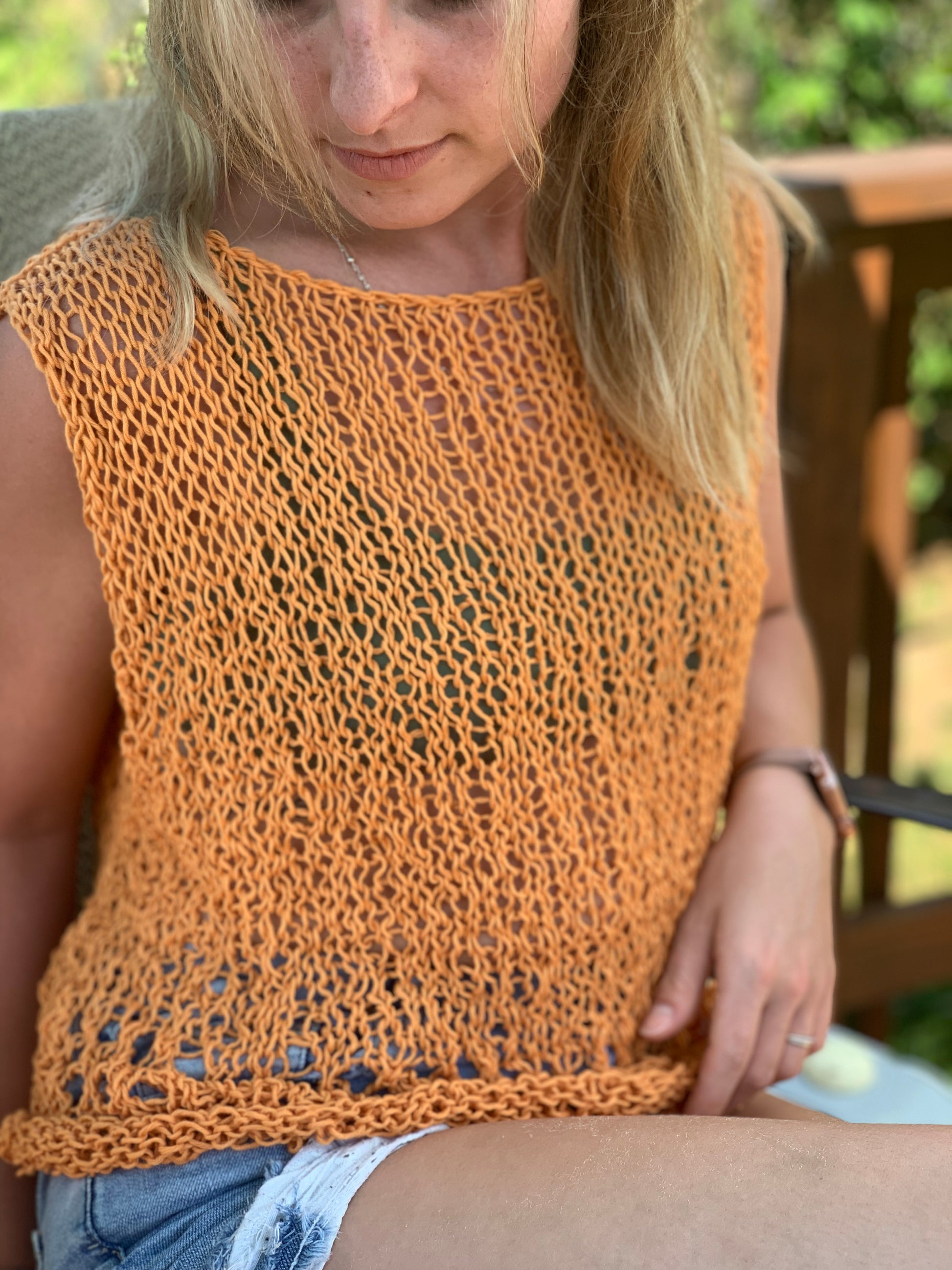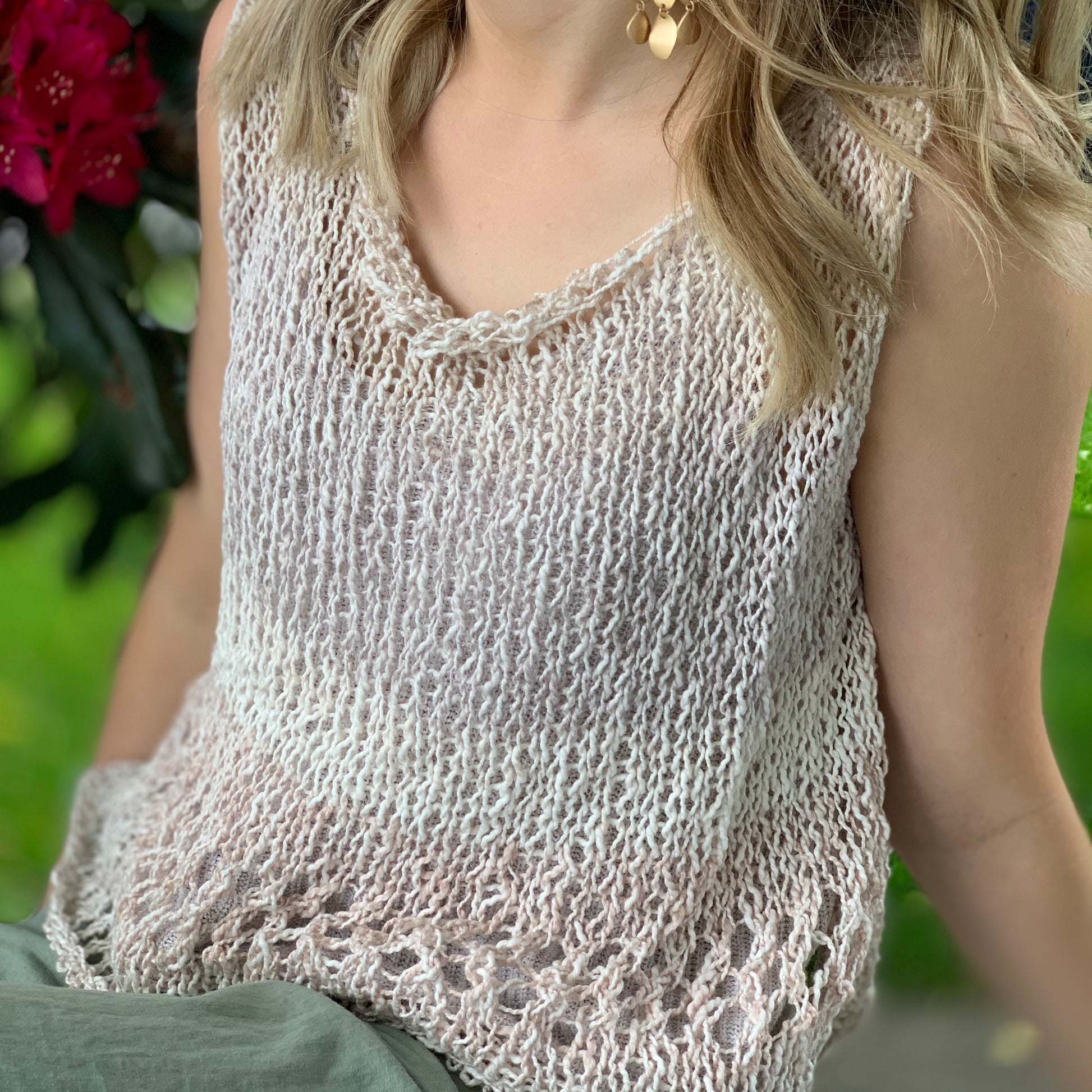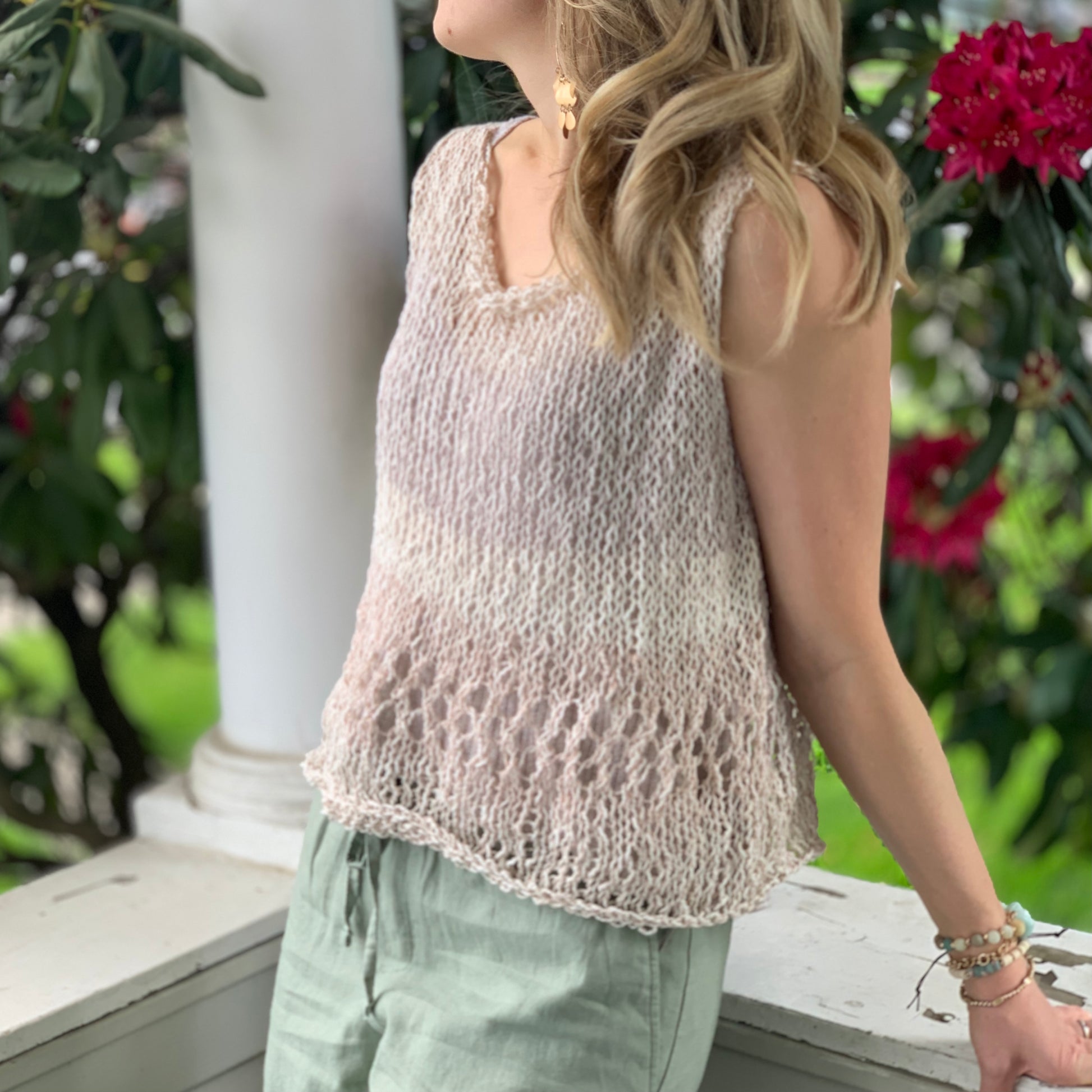 Sleeveless Cotton Top, Tank Top, Hand Knit, available in 3 colors