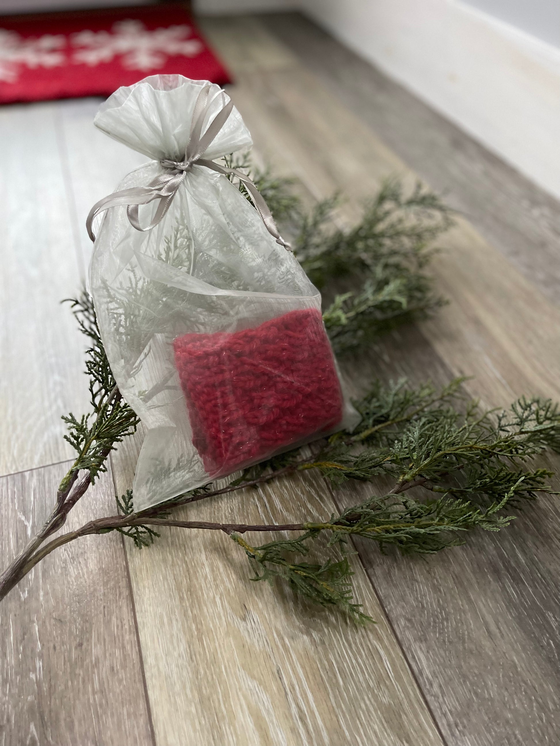 - red yarn is baby alpaca, has a silver thread throughout giving just a hint of sparkle