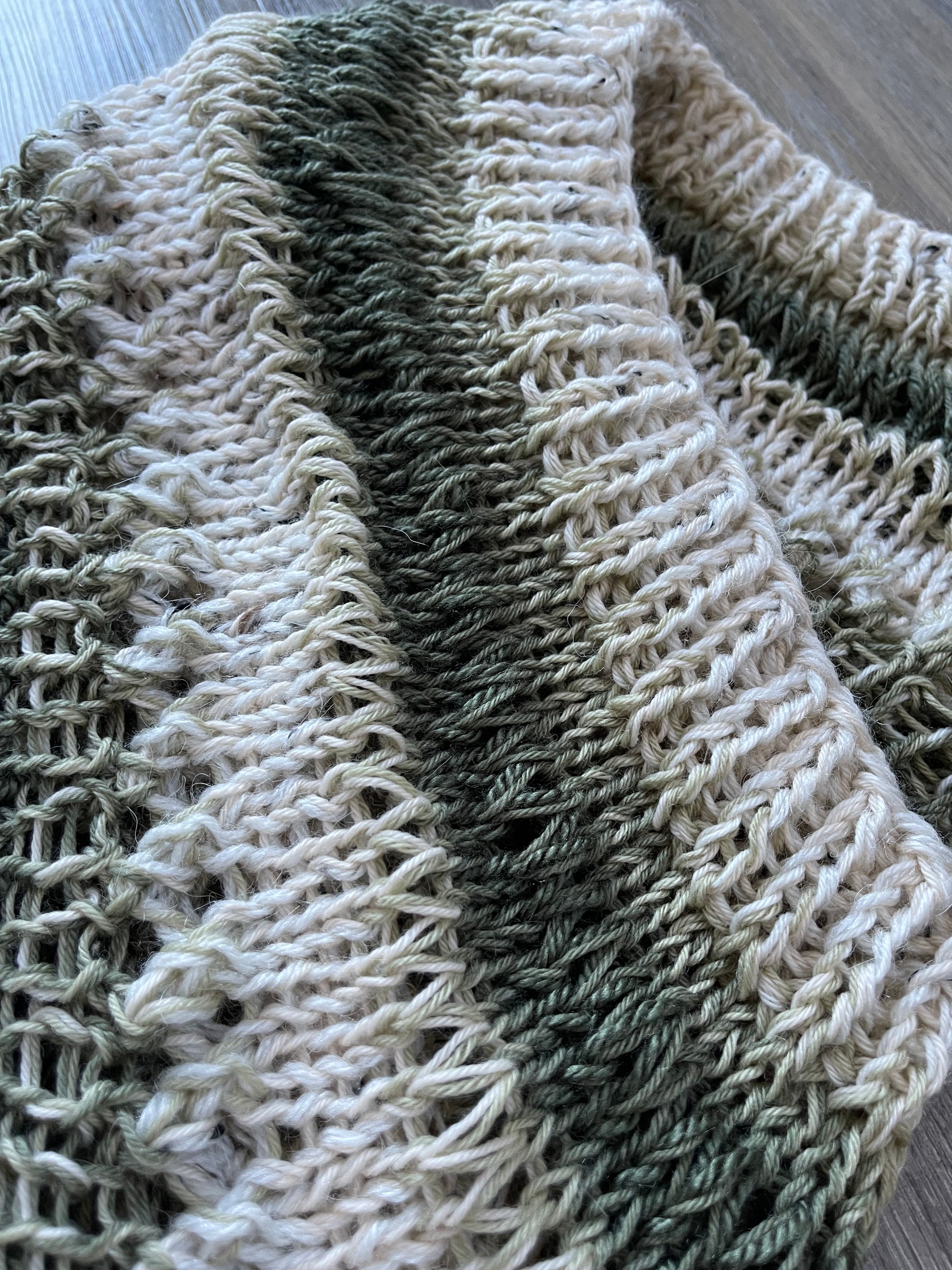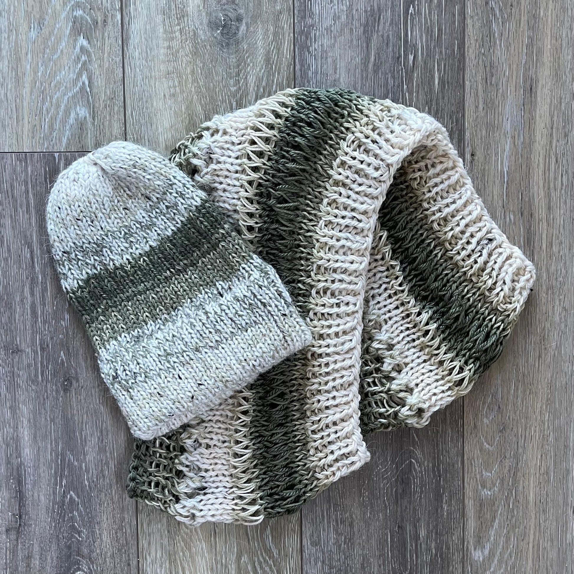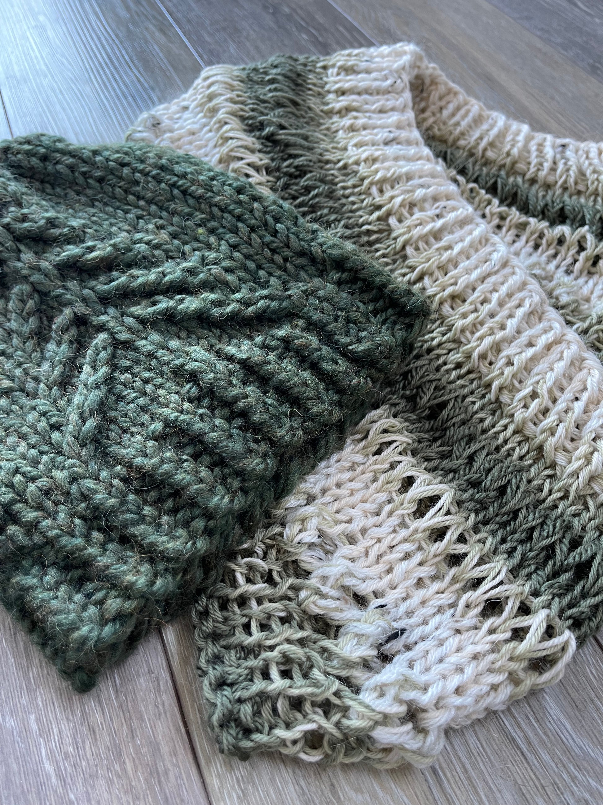 Winter Infinity Scarf Hand Knit in Evergreen & Ivory