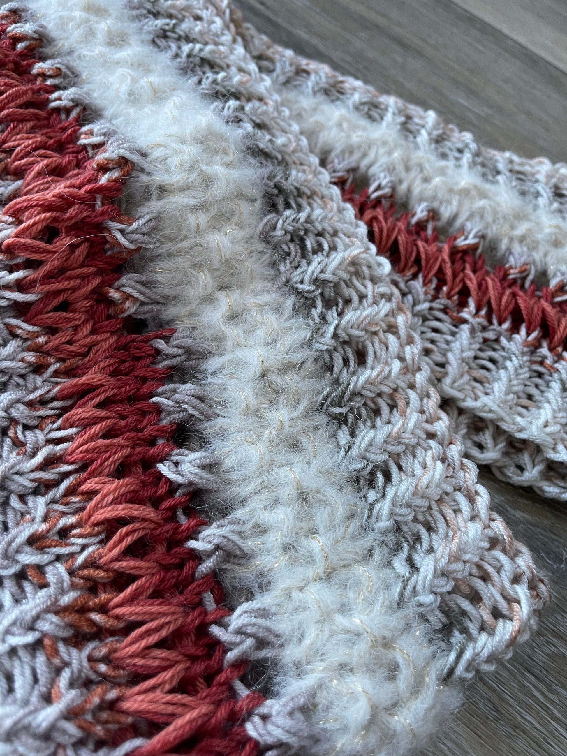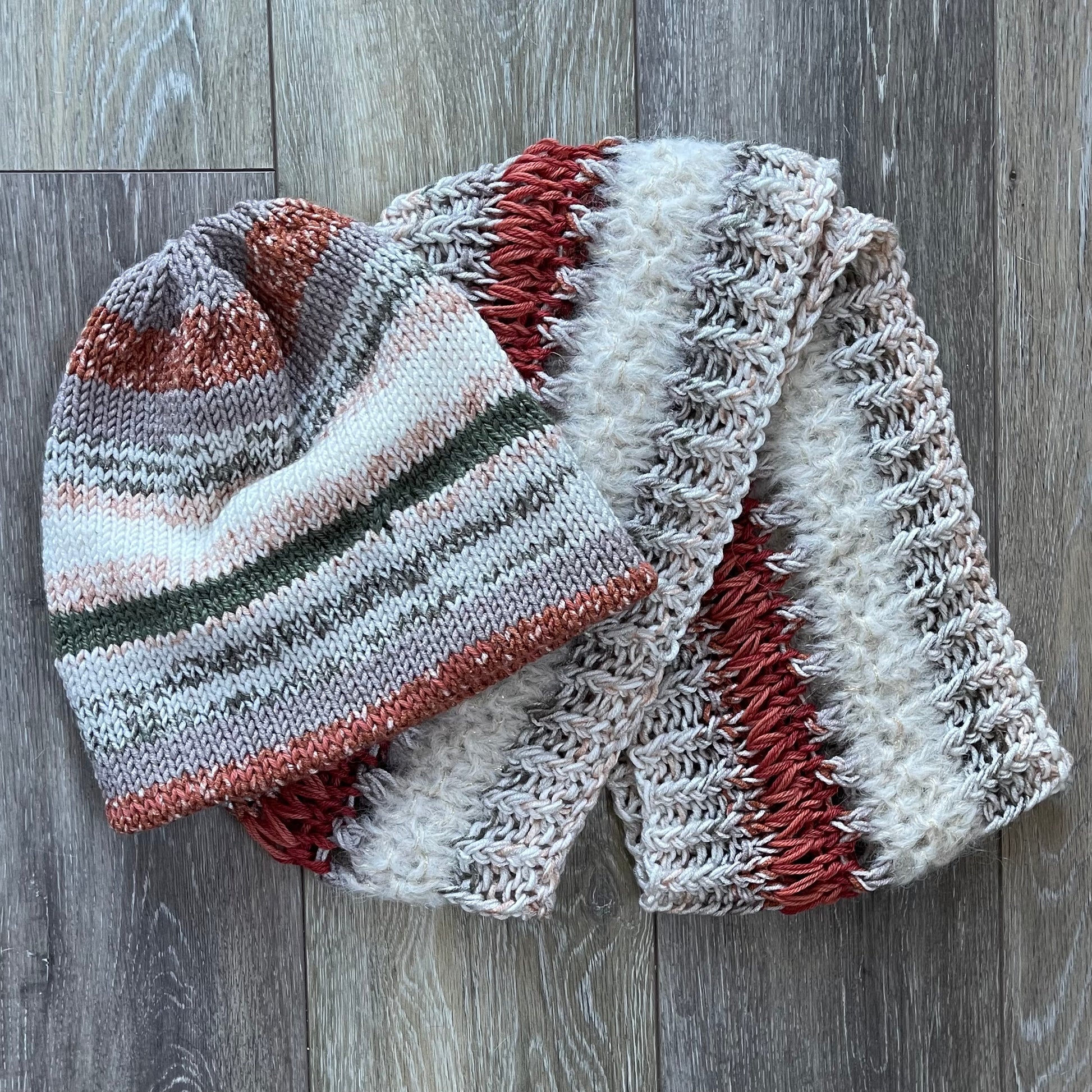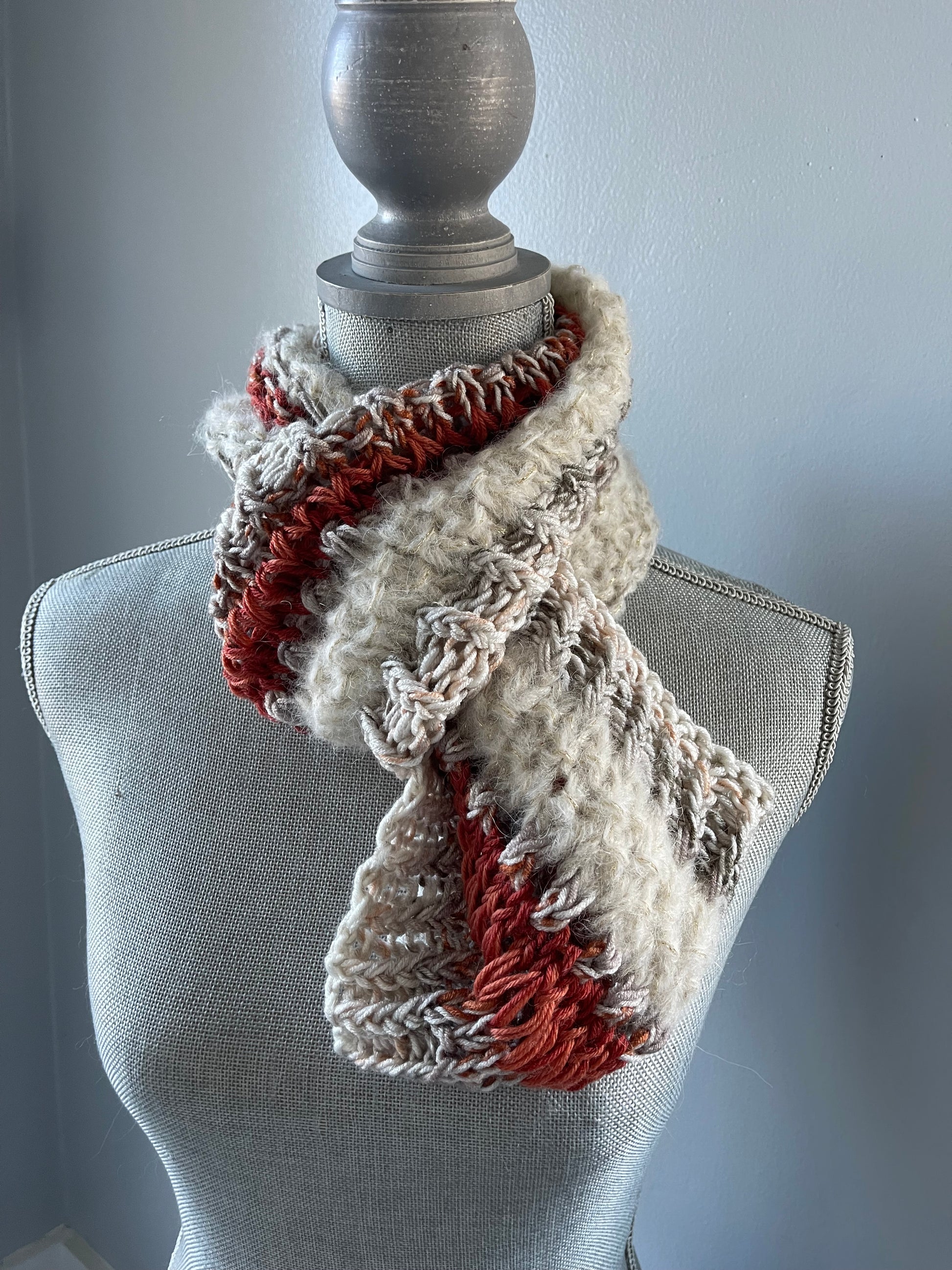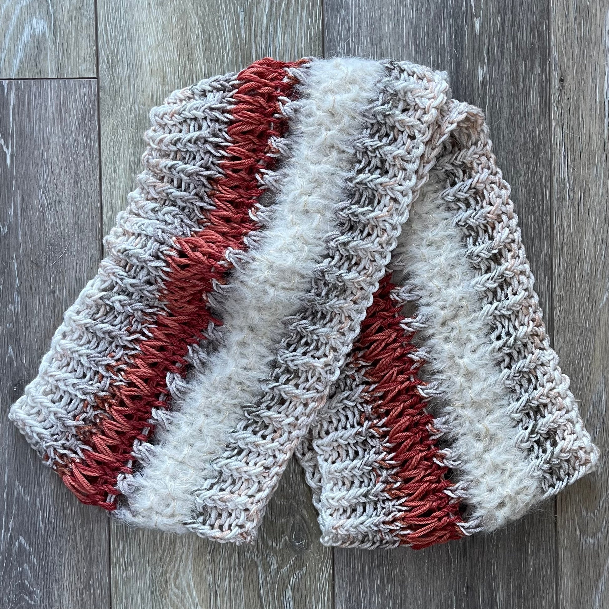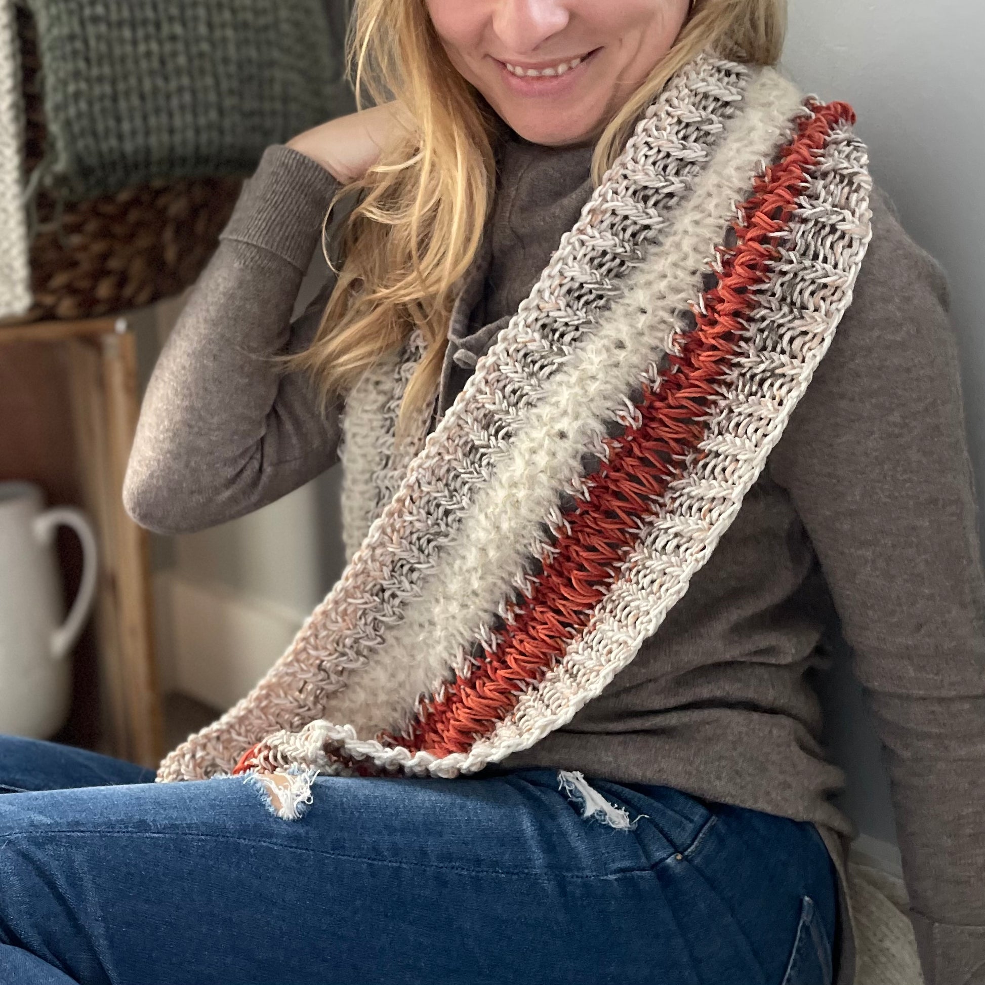 Infinity Scarf Hand Knit in Ivory & Rust
