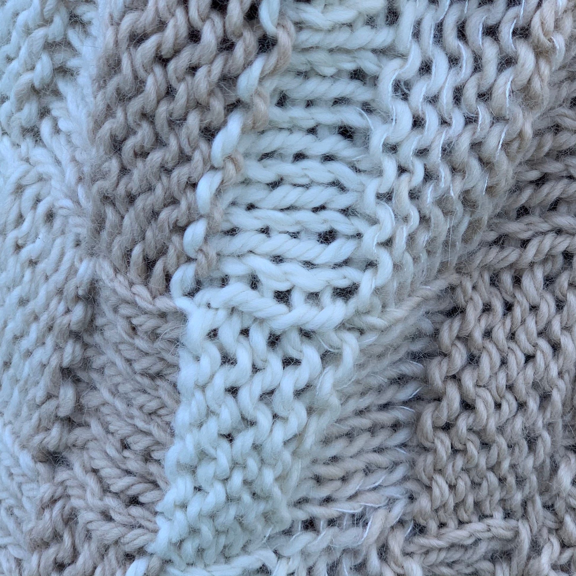 - 3 shades of beige and cream in a combination of knit & purl stitches create a subtle checkerboard pattern